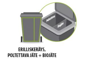 Sisältää kaksilokeroastian, josta löytyy omat lokeronsa biojätteelle sekä poltettavalle jätteelle. Biojätteen erilliskeräys laajenee jätehuoltomääräysten mukaisesti koskemaan kaikkia vakituisesti asuttuja kiinteistöjä, myös pientaloja, koko Etapin toimialueella 1.4.2024 alkaen.